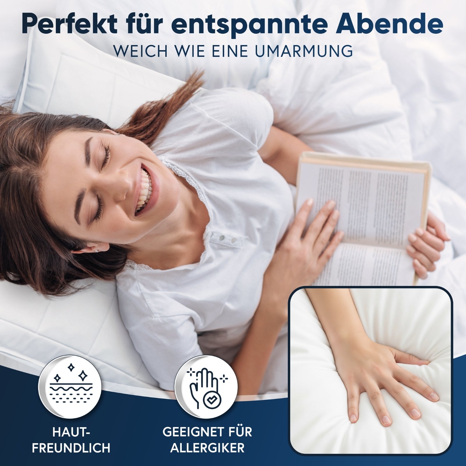 Der Bezug aus feiner Mikrofaser fühlt sich seidig weich an, ist hautfreundlich und pflegeleicht.